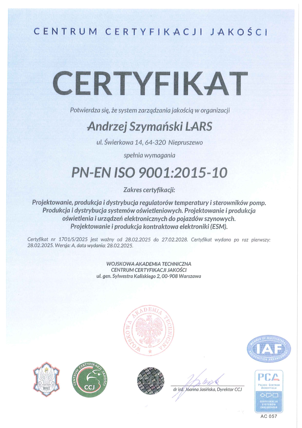 Również kwestie certyfikacji, legalizacji czy atestacji są dla nas codziennością. Z jednej strony LARS dostarcza rozwiązania dla sektora transportowego, w tym kolejowego, z drugiej dla branży budowlanej, a z jeszcze innej dla przemysłu meblarskiego. To jednak tylko przykłady, które obrazują, że przy odpowiednim nastawieniu jesteśmy w stanie sprostać każdym standardom narzucanym przez przepisy.